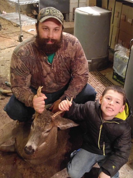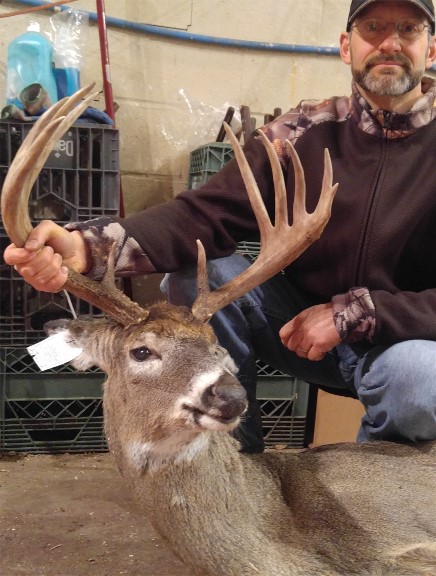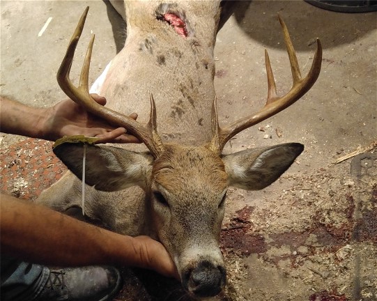 Pat Miller posing with her 3 and one half year old 8 point Buck