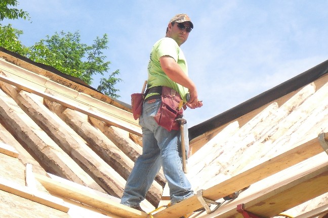 Shawn and Dan Secor working on the Lake Side Roof Structure